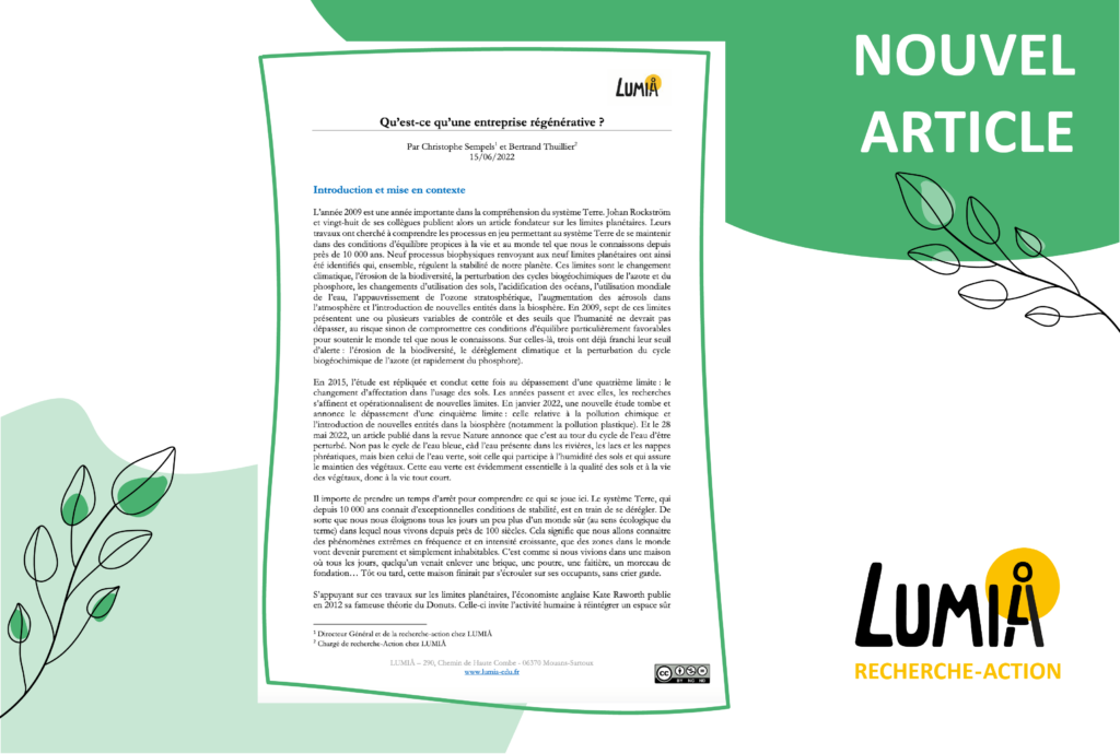 La régénération socio-écologique est une révolution pour l’humanité et ses institutions et organisations, dont l’entreprise. Car au-delà de générer des impacts positifs nets pour les écosystèmes et la société, il s’agit de repenser de manière profonde le rapport que nous entretenons avec le vivant sous toutes ses formes dans une logique symbiotique et co-évolutive.
